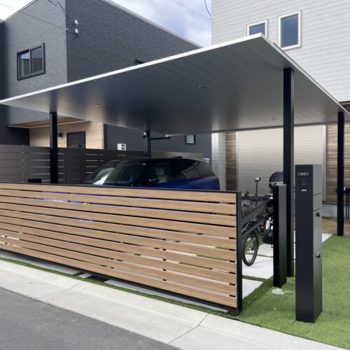 神戸市北区にて ⚪︎カーポート ⚪︎オーバーゲート ⚪︎目隠しフェンスの エクステリア工事の施工をさ